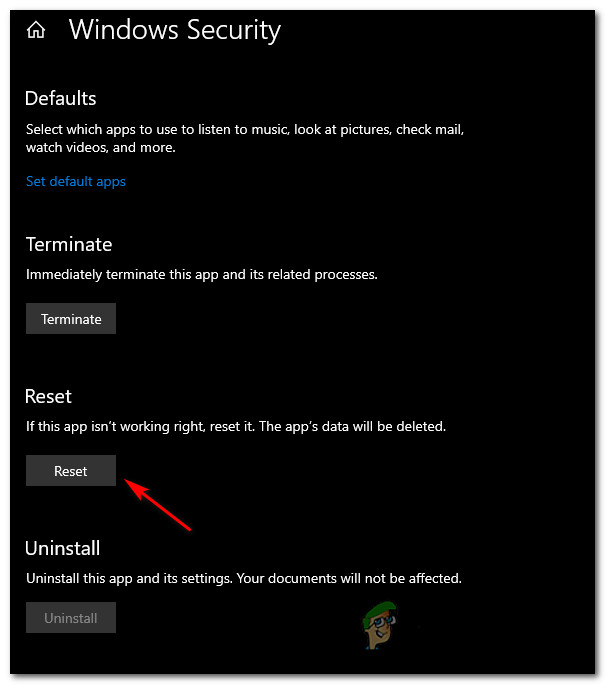 Most commonly, this error code occurs when certain files belonging to the security suites are tainted by corruption. Several affected users that were dealing with the same issue have confirmed that the issue was finally resolved after they have successfully reset the Windows Security app.