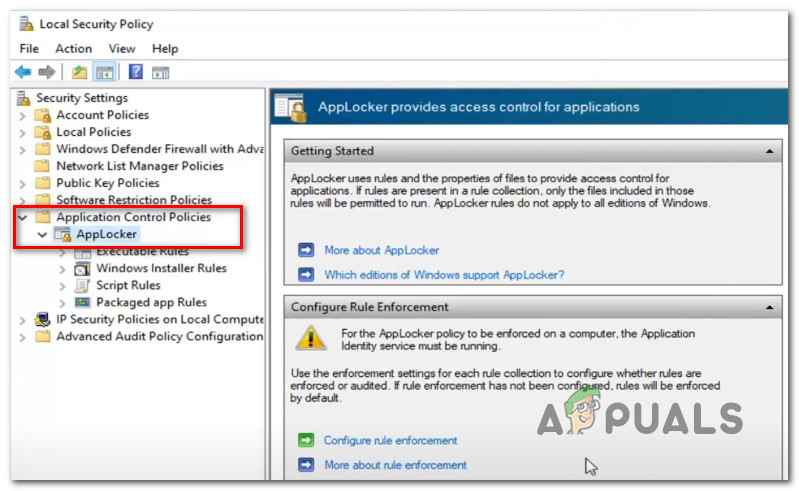 - Applocker interference – As it turns out, a fairly common instance that will trigger this error is interference caused by Applocker. In this case, you should be able to fix the issue by temporarily disabling AppLocker while the installation or uninstallation of the problematic UWP update is complete.
