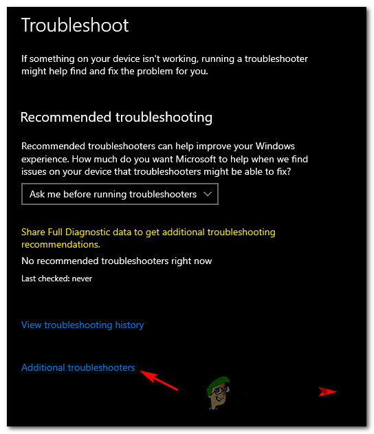 - Start by pressing the Windows key + R to open up a Run dialog box. Next, type ”ms-settings:troubleshoot” inside the text box and press Enter to open up the Troubleshooting tab of the Settings menu.