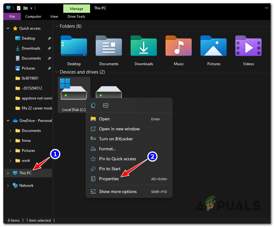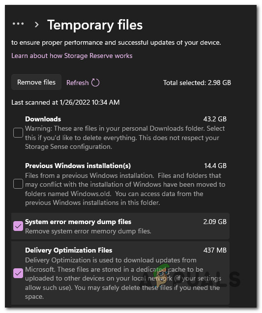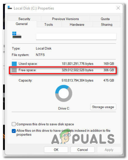 - Insufficient Storage available on the OS partition – Keep in mind that similar to a clean installation of Windows, there’s a certain threshold of free space that you need to meet in order to be able to reinstall Windows 11. Make sure you have at least 35 GB of free space before attempting to initiate the repair procedure once again.