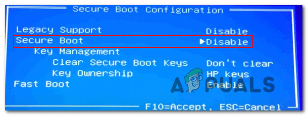 - Secure boot interference – Secure boot has already become an industry standard, but increasingly more users are reporting that this feature might conflict with the reinstallation of Windows 11. If this is the culprit causing the 0x800F0955 – 0x20003, you should be able to bypass the error by temporarily disabling Secure Boot before you attempt to do the reinstallation of Windows 11.