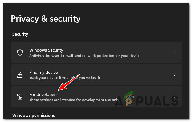 - Inside the Privacy & security tab, move over to the right menu and click on For developers (under Security).