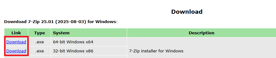 - Go to 7-Zip Download.