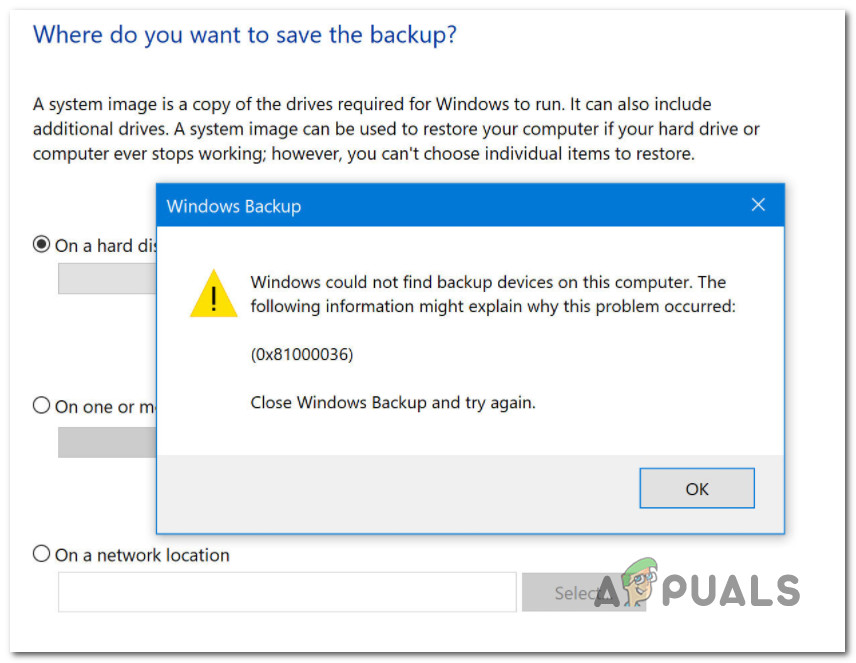 - Return to your Windows Backup utility and repeat the action that was previously triggering the 0x81000036 error.