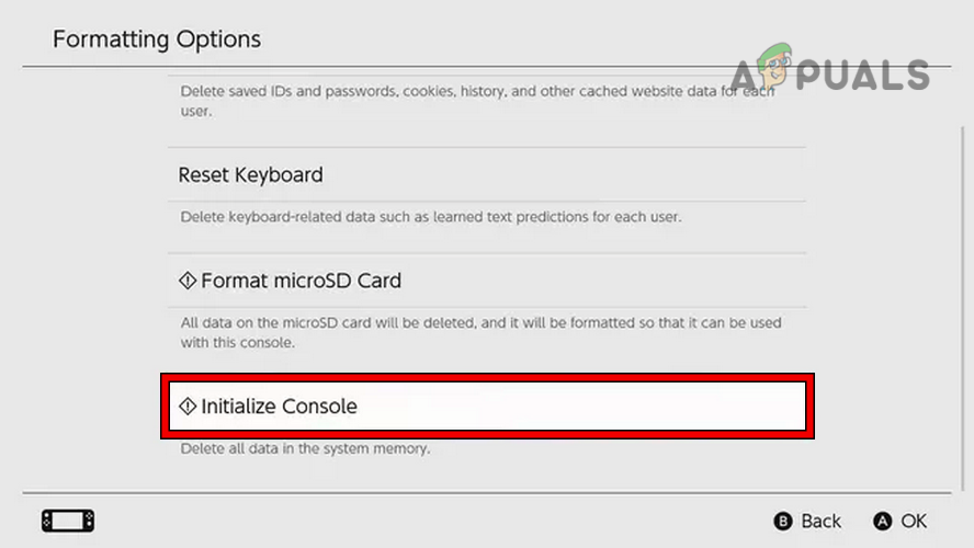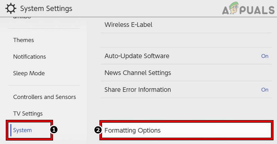 Open Formatting Options of the Nintendo Switch - Then select the user and follow the prompts on the screen to clear the cache of the Nintendo Switch.