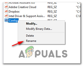 Renaming the Config Parameter - Once the parameter has been renamed correctly, save the changes, close the Registry Editor and restart your computer.