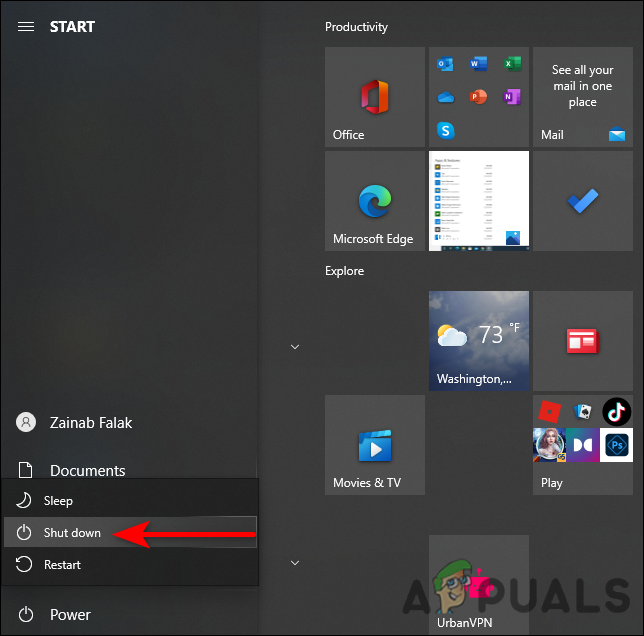 - Press and hold the Shift key down while clicking on Shut Down.