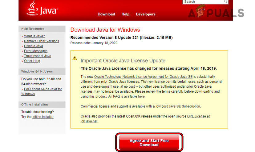 If the Java’s installation on your system itself is corrupt, then that can also be the cause of the issue as many of the Java libraries may not be available to the problematic game, application, or website. In this scenario, reinstalling Java on your system may clear the error 500. For illustration, we will discuss the process of reinstalling Java on a Windows system.