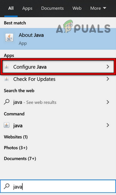 - Press the Windows key and search for Java.