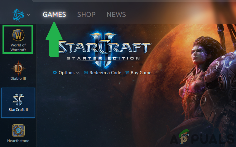Clicking on “Games” and selecting the “World of Warcraft” option from the left tab. - Click on the “Play” option and wait for the game to launch.