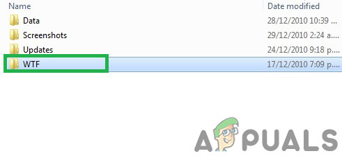 Clicking on the “WTF” folder - Double click on the “Config.wtf” file to open it and add the following line to edit it.