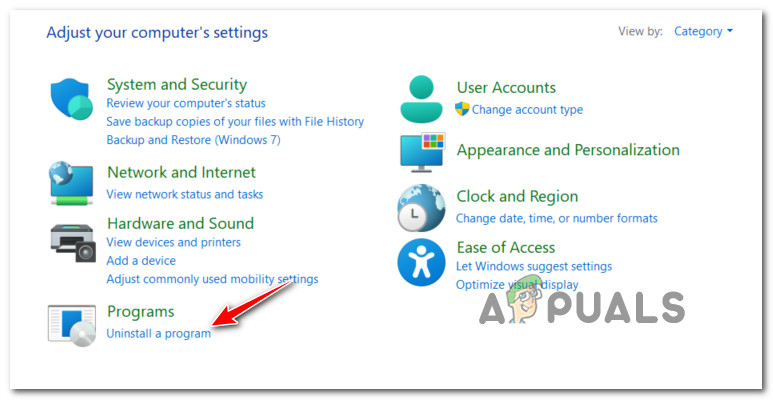 - Under Programs, click the Uninstall a program option in the Control Panel.