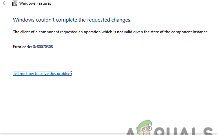 The error code 0x80070308 pops up when the users try to change Windows configuration by checking or unchecking any of the options in the Turn Windows features on or off dialog.