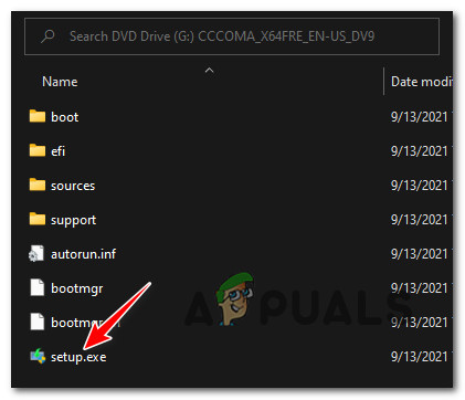 - Once you’re inside the root location of Windows 11’s ISO, double-click on setup.exe, then click Yes when you’re prompted by the User Account Control.