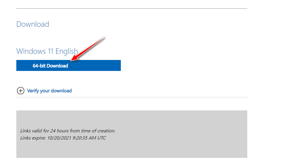 Download the Windows 11 ISO - Finally, click on the new Windows 11 English ISO Button that just appeared to confirm the download.