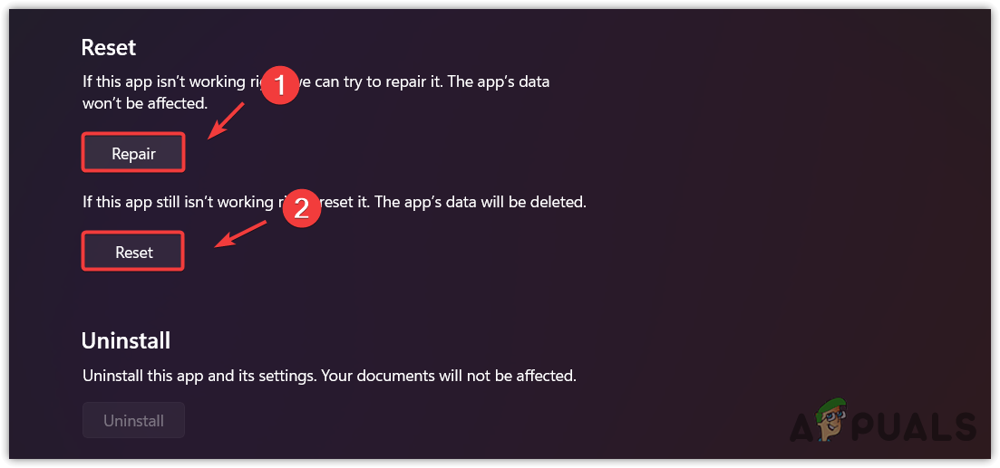 - Click the Repair option and wait for it to be properly repaired.