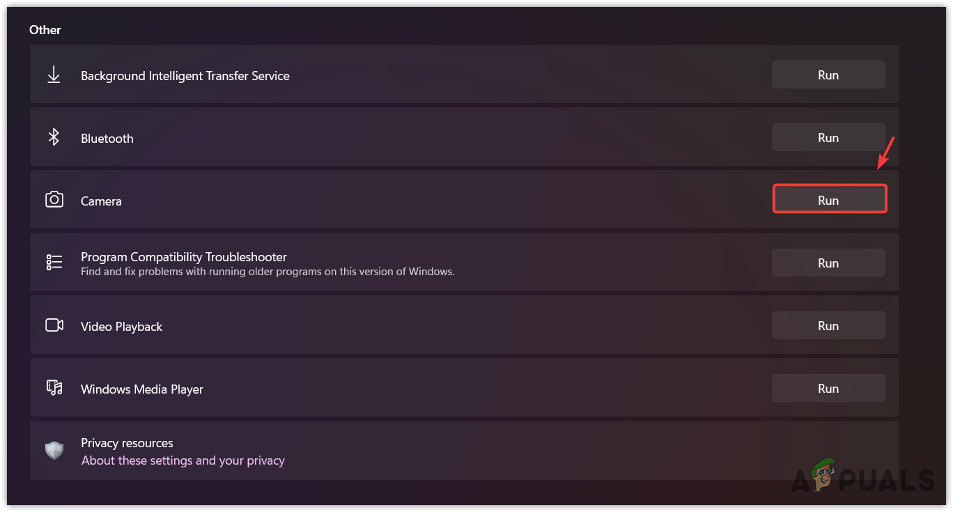 - Here run the Camera app troubleshooter.