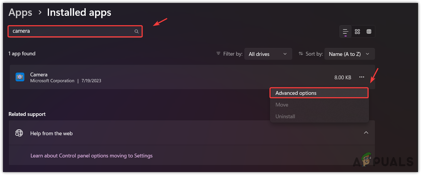 If the error still persists, you can try repairing or resetting the Camera app. Resetting or repairing the Camera app will clear the cache files and restore the corruption from the application files. You can first repair the Camera app, then if it does not work, proceed to reset the Camera app. Follow the instructions: