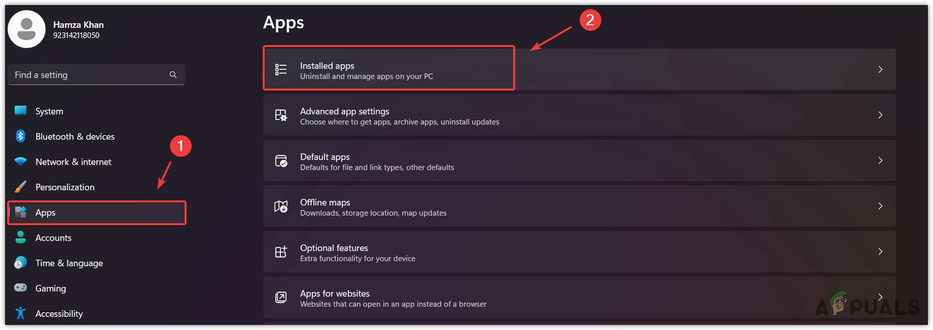 - Head across to the Apps > Installed Apps.