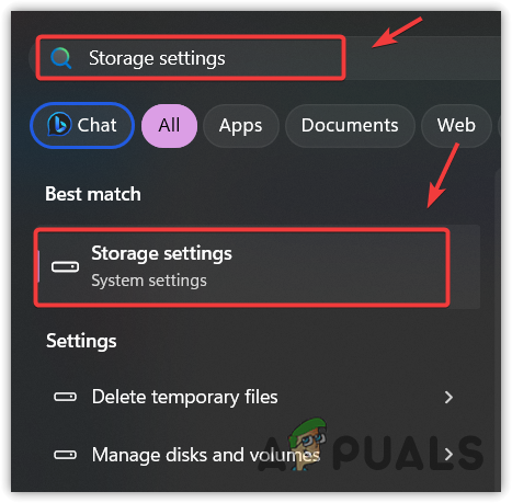 - Click the Start Menu and type Storage Settings.