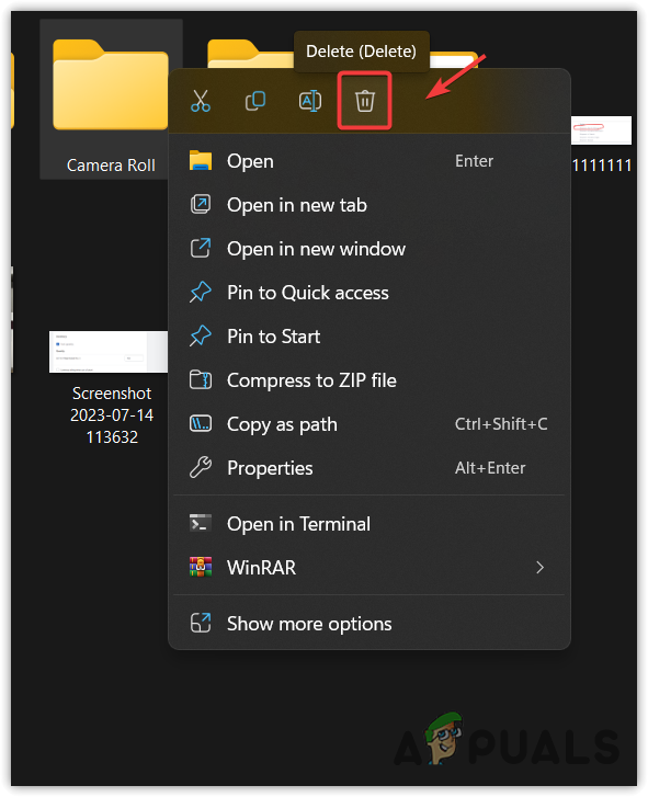 - Once done, go to the Pictures folder and delete the Camera Roll folder.