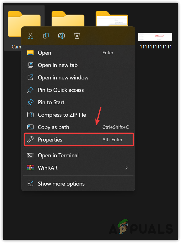 - Go to the Pictures folder, right-click on the Camera Roll folder, and select Properties.