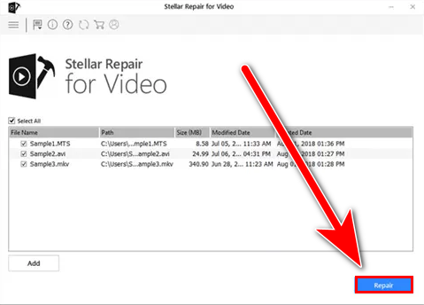 Click on Add file to add a corrupted file - Click on the Repair button to start the repair process.