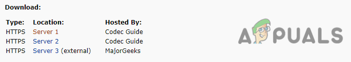 - Scroll to the downloaded section, and click on server 1 to start the download process of the k-lite codec pack.