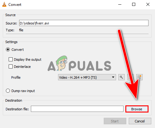 Click on Convert / save button - Now click on the Browse button to add the destination where the converted file will save.