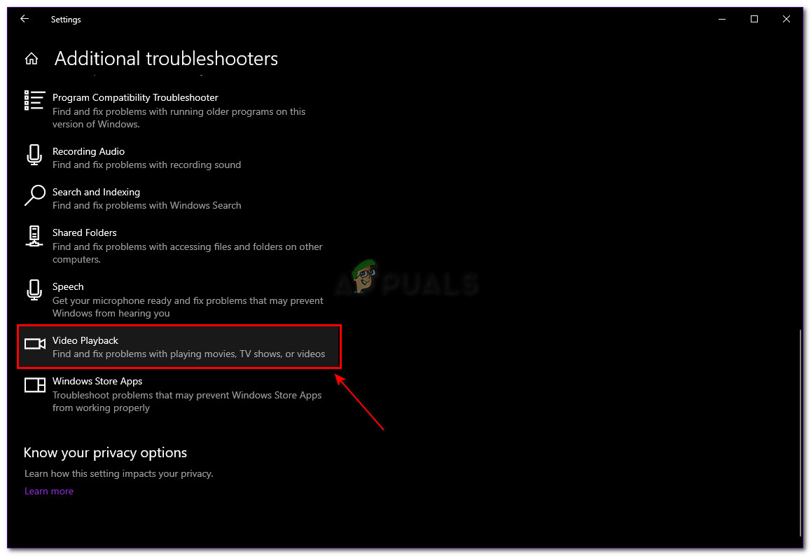 Troubleshooter Video Playback Now you can find out what was causing the error code to pop up.