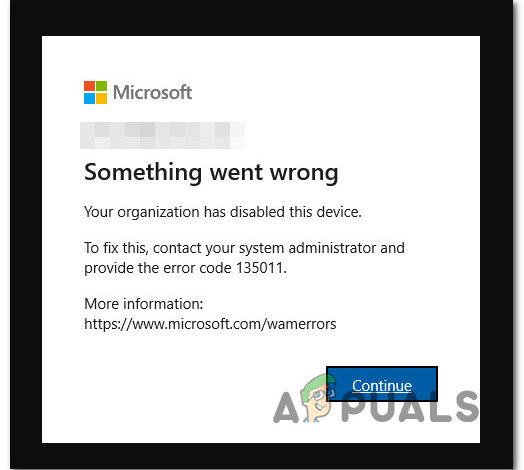 The error code 135011 is encountered when users attempt to log into their Microsoft Office or Microsoft 365 suite using any client such as Microsoft Outlook. This error code signals that the organization you’re part of has disabled your device.
