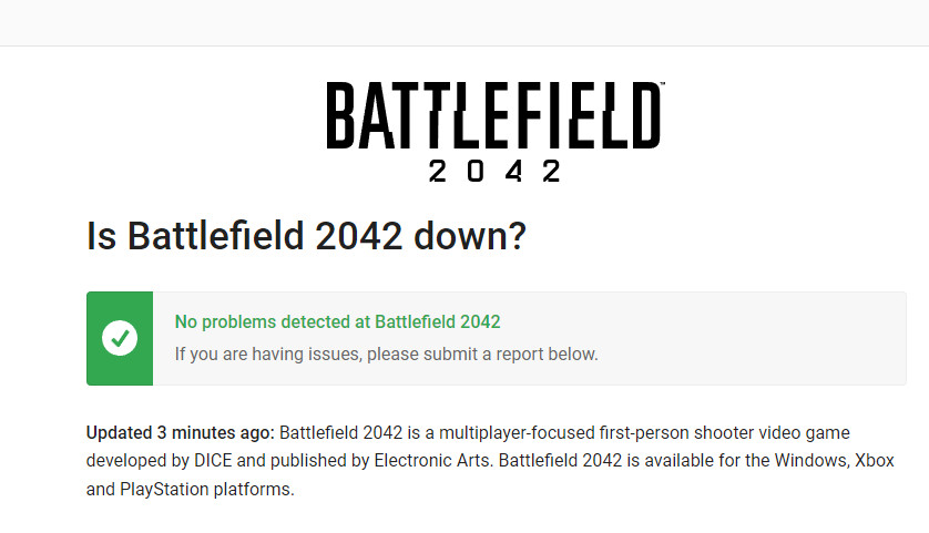 Before you try any of the other fixes below, you should start this troubleshooting guide by verifying whether DICE is currently busy trying to resolve a server issue. Another possible scenario is scheduled maintenance that makes the connection with the game server impossible.