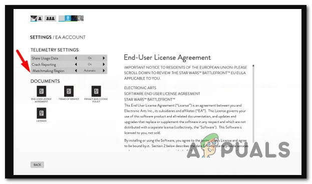 Accessing the EA account settings - From the next menu, change the MatchMaking region to New Zealand, then save the changes.