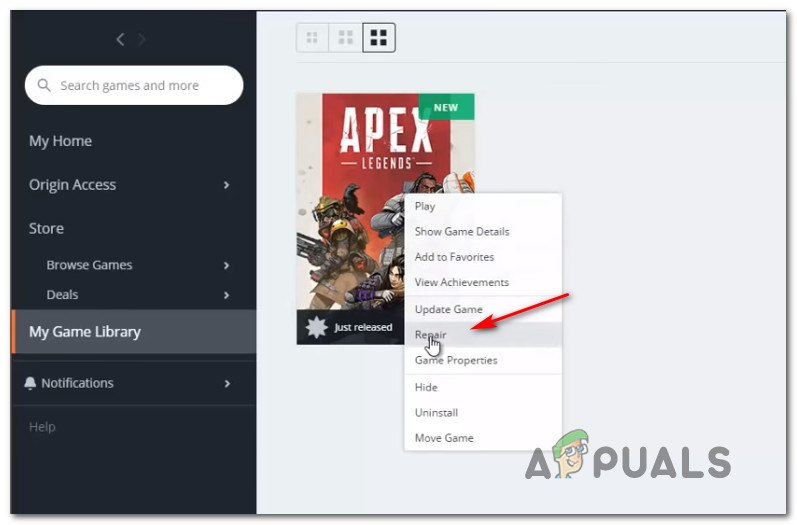 Repairing Apex Legends - After the launcher verifies the game files and replaces the corrupted one with fresh copies. But do keep in mind that you’ll need a stable Internet connection in order for this process to be successful.