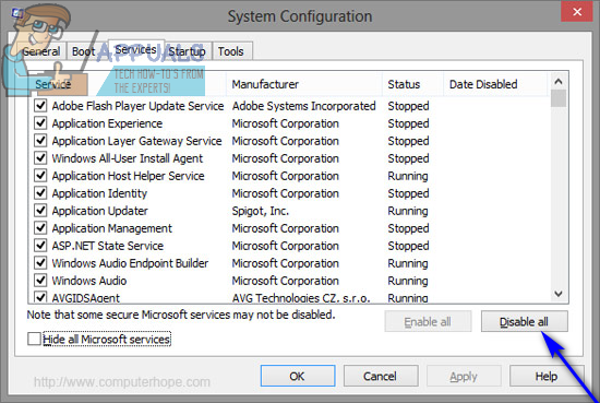 Solution 2: Boot your computer up with all services disabled, and then enabled