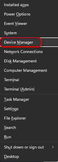 - Press Win + X and select Device Manager.