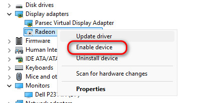 - If it is disabled, right-click and select Enable device.