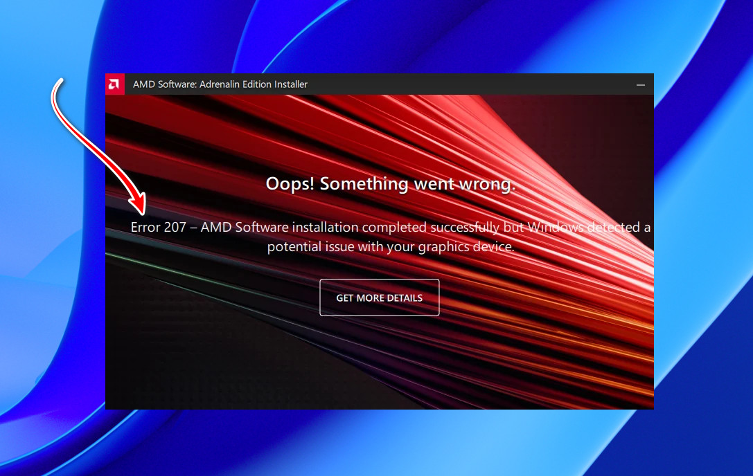 “Error 207 – AMD Software installation completed successfully but Windows detected a potential issue with your graphics device“