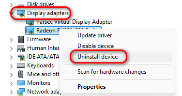 - Expand Display adapters and right-click your AMD GPU.