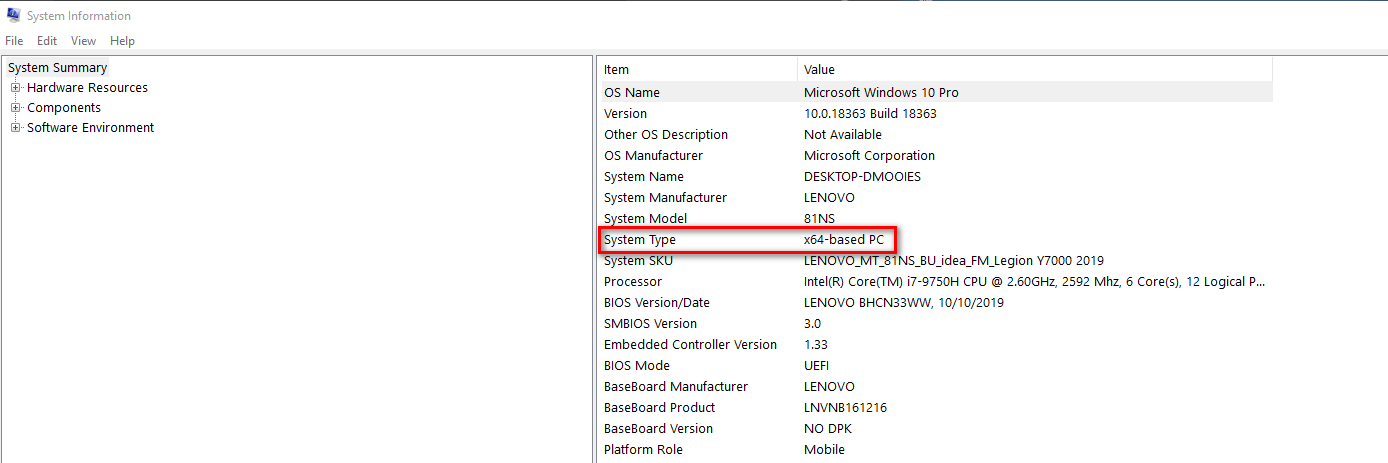 Note: If you’re not sure which bit infrastructure you’re using, press Windows key + R (to open a Run box) then type ‘msinfo32’ and hit Enter to open up the System Information menu. Once you’re inside, click on msinfo32, then move over to the right-hand section and check the entry associated with System Type – If it says x64-based PC, you’re using a 64-bit version and if it says 86-based PC, you’re using 32-bit.