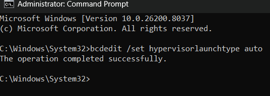 bcdedit /set hypervisorlaunchtype auto