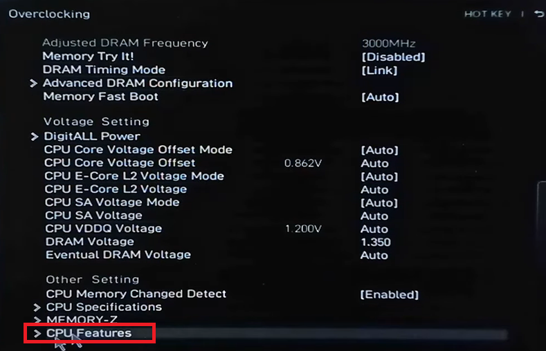 - Look for CPU Features in Overclocking settings.