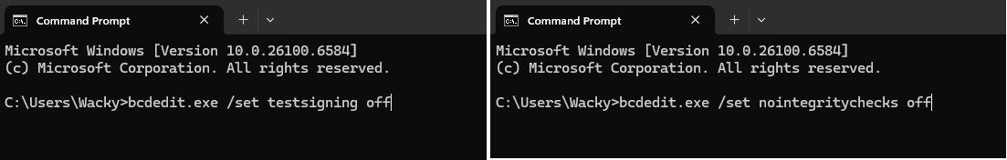3. Run Windows Commands to Disable Test-Signing and No Integrity Checks