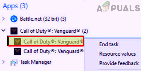 End Tasks of Call of Duty Vanguard in the System’s Task Manager - Afterward, launch the Vanguard game and check if it is operating fine.