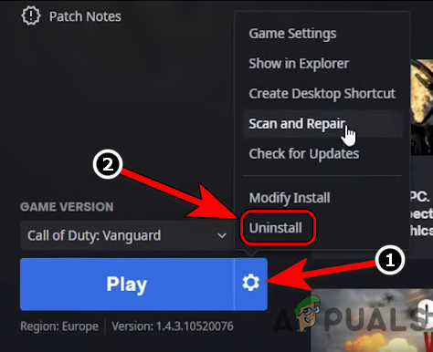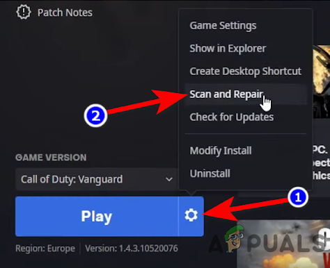 If the game’s installation is corrupt, then that may result in the error message on Vanguard as the game may fail to load its essential modules in the system/device memory. In this scenario, scanning and repairing the Vanguard’s installation may solve the problem.