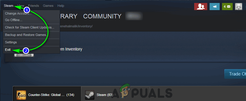 - In the top right corner of the Steam window, click on Steam.