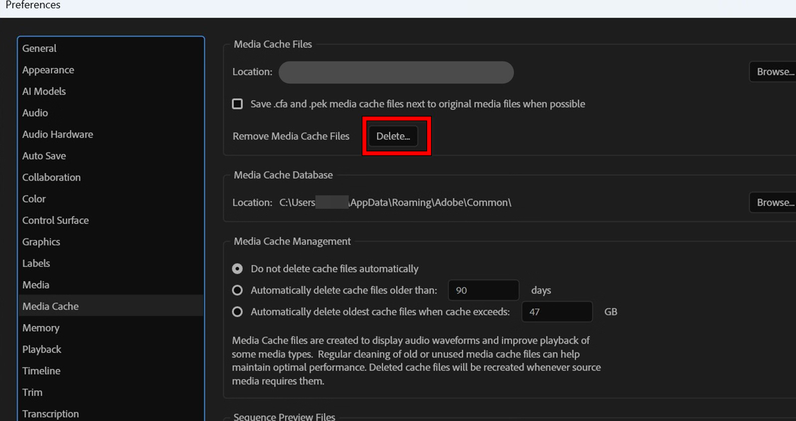3. Clear Media Cache and Video Preview
