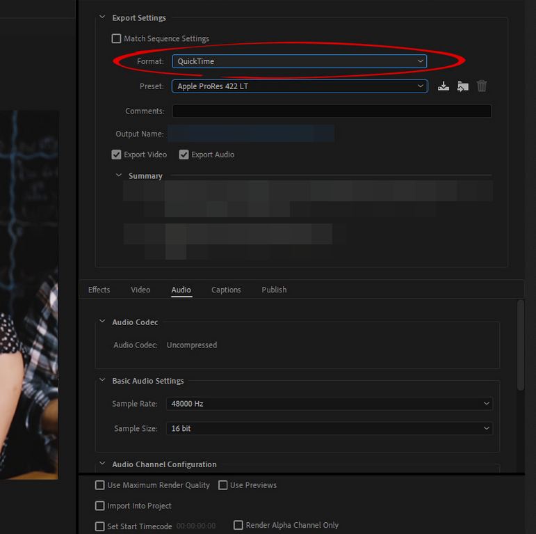 - Set Format to QuickTime.
