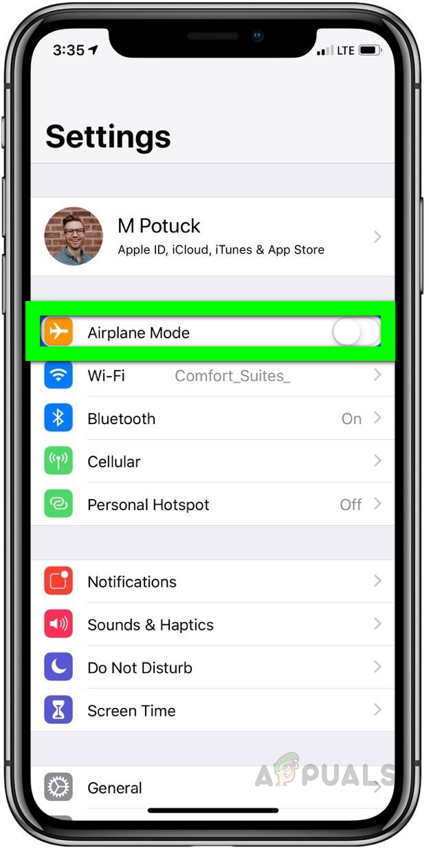 - Go to your iPhone Settings. The Airplane mode is the first option under your Account Name