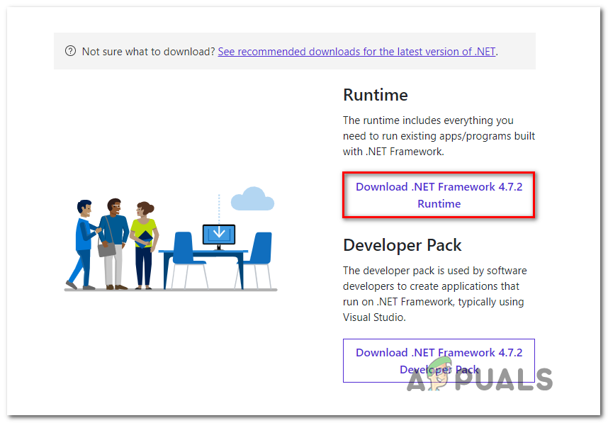 - Open your default browser and navigate to the official download page of the .NET Framework 4.7.2.